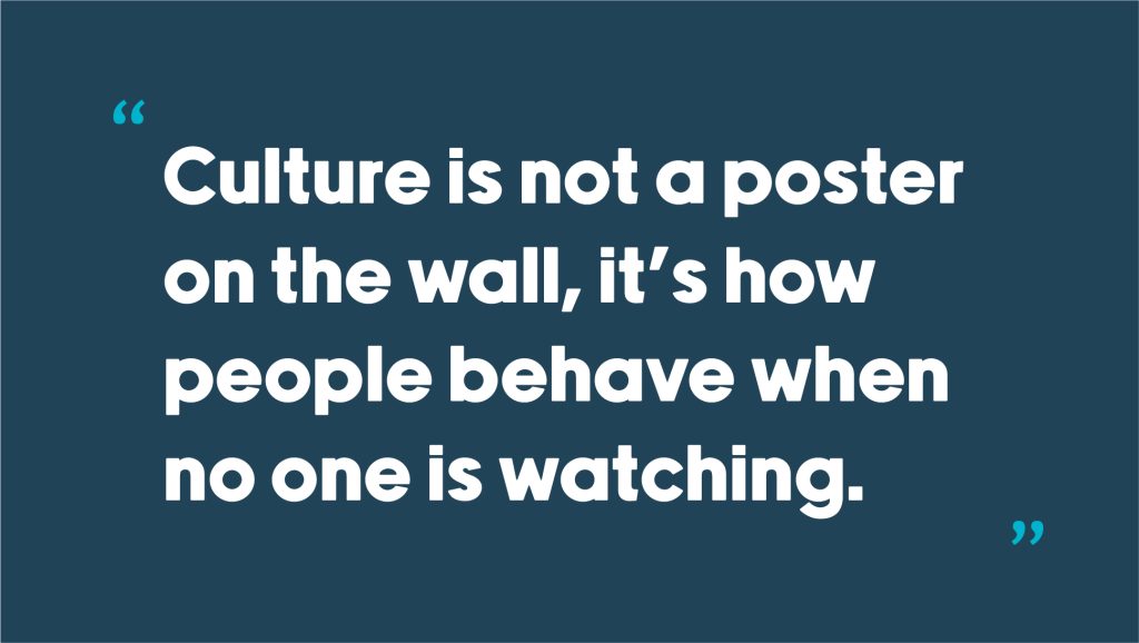 Culture is not a poster on the wall, it’s how people behave when no one is watching. It’s how decisions get made, how people treat each other, and how meetings feel, yes feel.